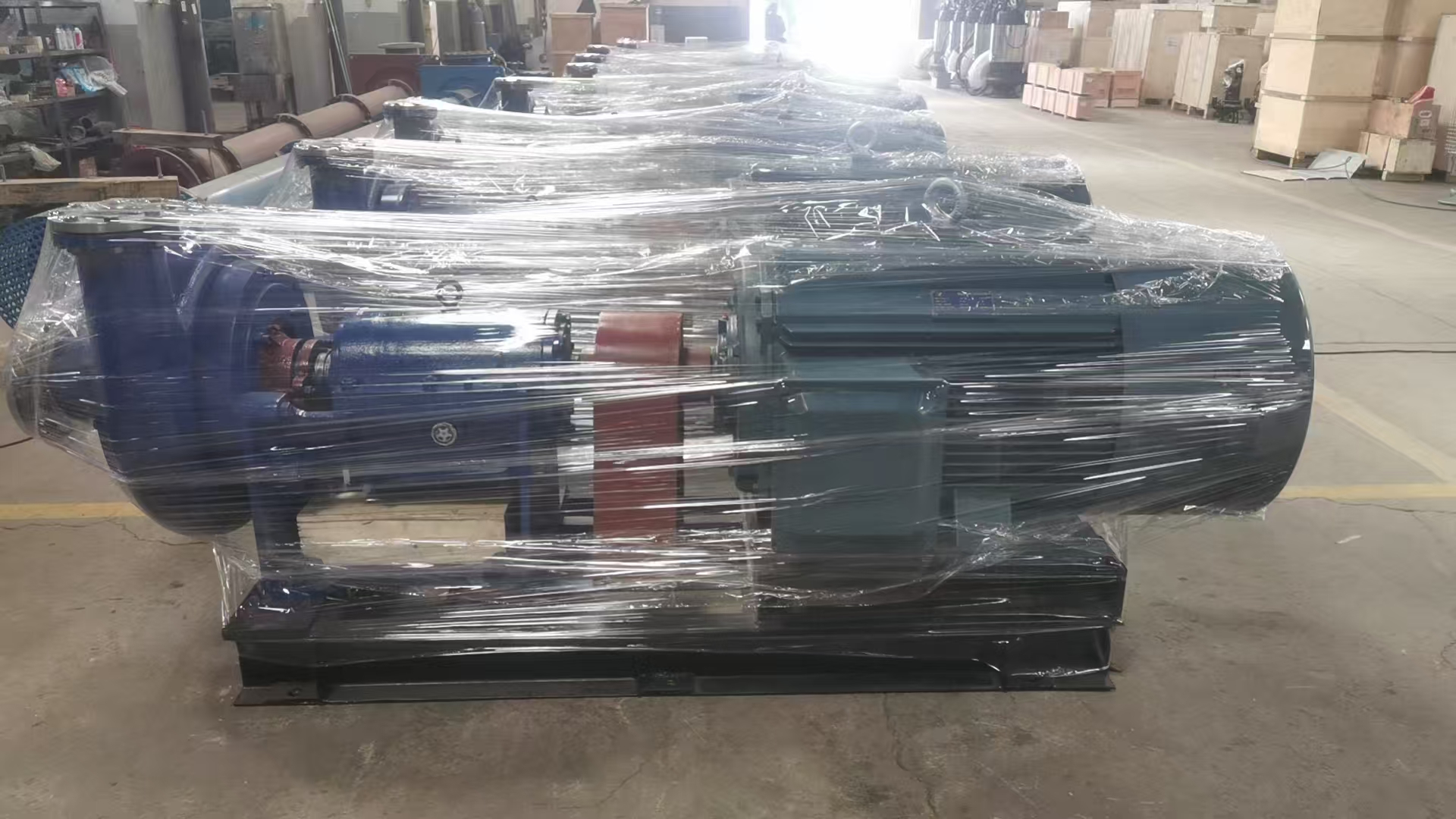 根据隧道施工进度,第二批隧道用主排水泵,生产完毕,其中110KW主泵4套,90Kw主泵4套,2台清淤泵以及相应的配套控制柜。首批主排水泵已投入使用2个月,目前使用稳定,第二批到达后将立即投入安装工作,予4月中旬前投用。