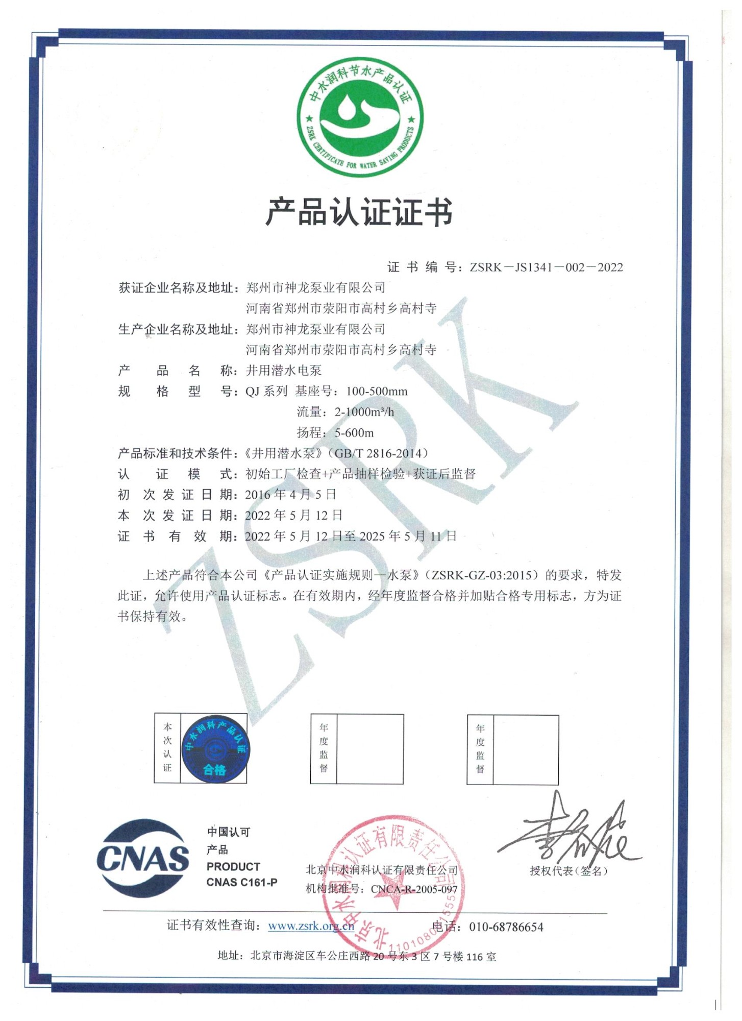 井用潜水泵节水认证